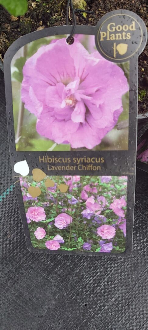 Ketmia syryjska “Lavender Chiffon” wyjątkowo szybko rosnący krzew o wyprostowanym pokroju i dużych, półpełnych kwiatach, dorasta do 1-2 m wysokości. Liście jasnozielone. Kwiaty mają 10-15 cm średnicy, są różowofioletowe, z czerwonymi pazurkami u podstawy płatków. Okres kwitnienia przypada na sierpień , kwitnie aż do pazdziernika. Polecany do sadzenia w miejscach słonecznych w najcieplejszych rejonach kraju lub w pojemnikach chowanych na zimę do chłodnych pomieszczeń