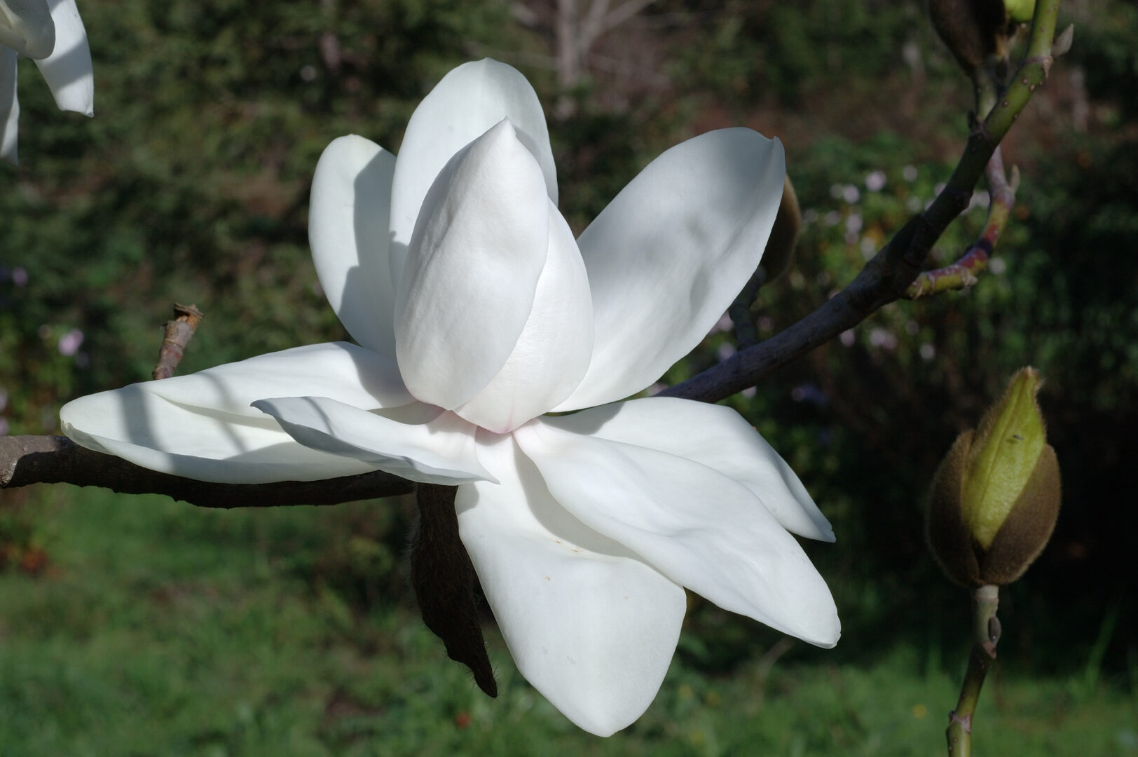 Kwiat / pora kwitnienia: duże, białe kwiaty; kwitnie zwykle w kwietniu–maju.